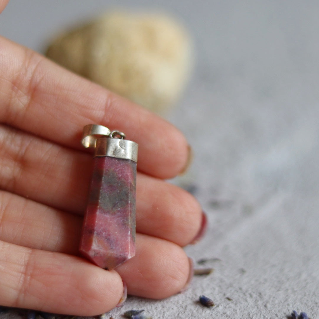 #rodonitas – tai švelnus, bet galingas širdies akmuo, gimęs iš žemės meilės ir atjautos. Jo rožinė spalva su juodomis gyslomis primena, kad net skaudžiausios patirtys gali tapti gijimo šaltiniu ir grožio išraiška.
