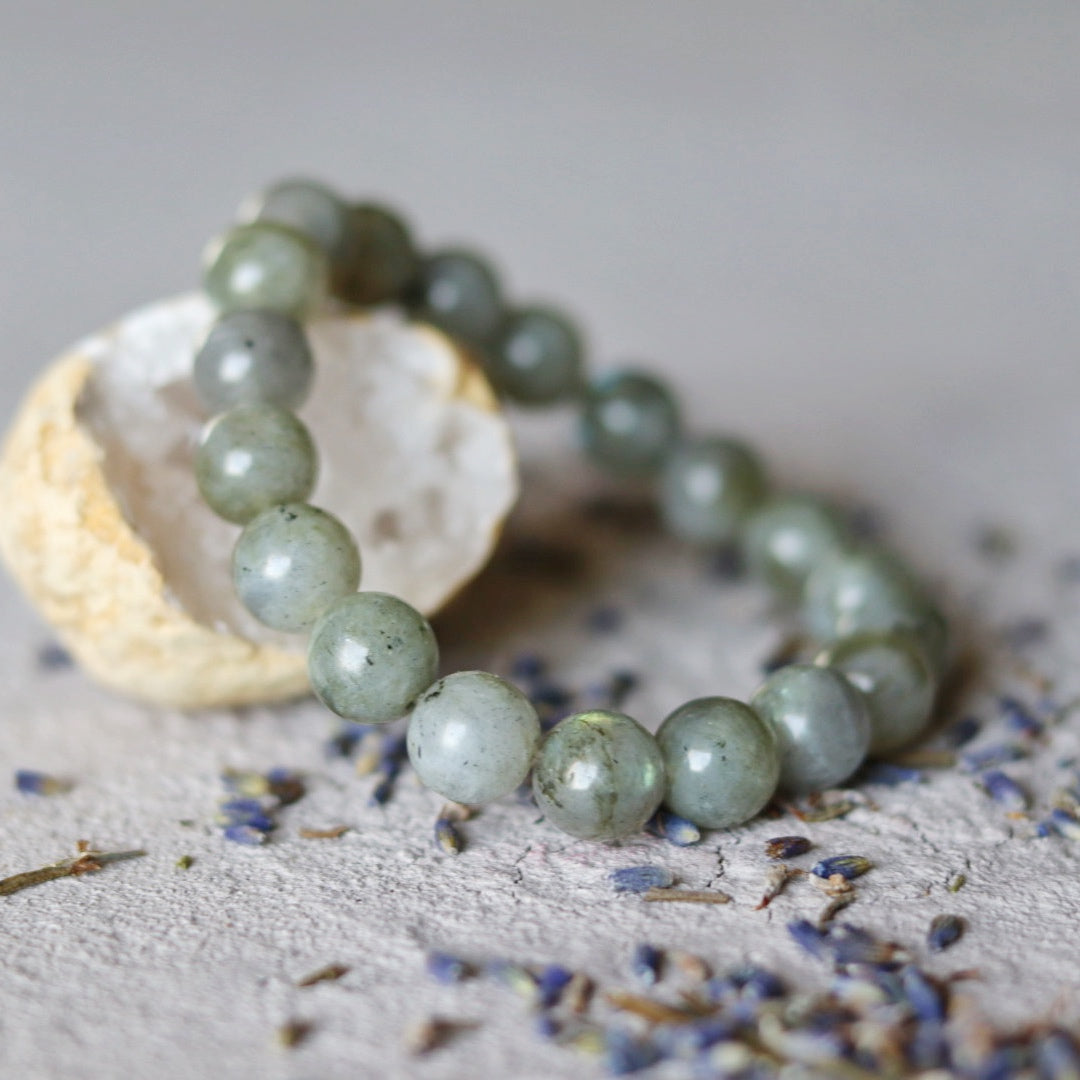 Jo blyksniai – tarsi žvaigždžių atspindžiai ežero paviršiuje – kviečia pasitikėti savo intuicija, sapnais ir vidiniu balsu, kuris tyliai kužda tavo likimo kryptį. Labradoritas sukuria apsauginį šviesos kokoną, neleidžiantį neigiamoms energijoms prasiskverbti į tavo aurą.