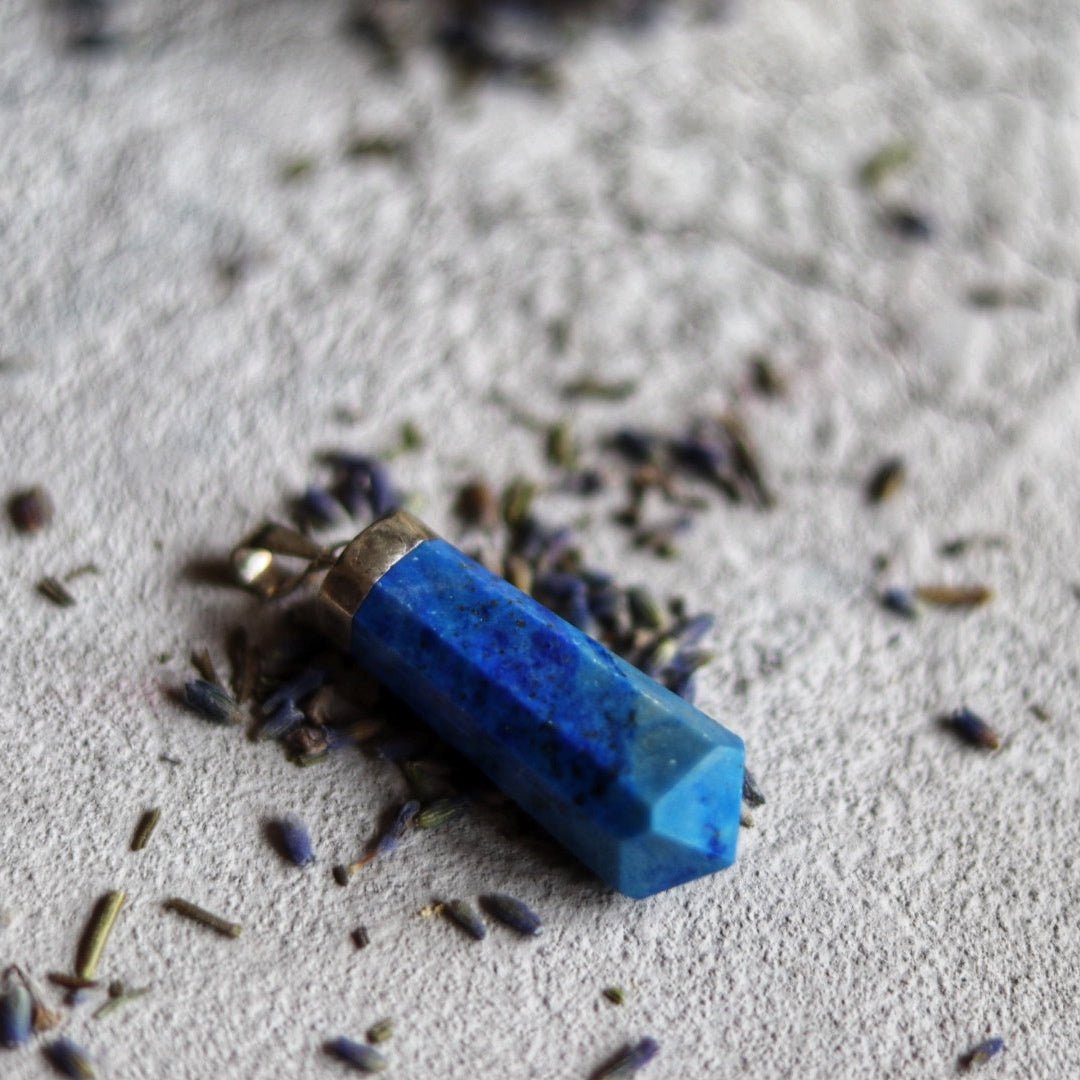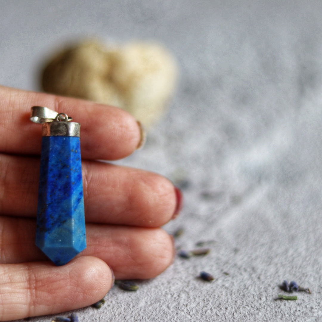Šis sodriai mėlynas lazuritas (lapis lazuli) pakabukas – tai senovės karalių, žynių ir išminčių akmuo, šimtmečius naudotas tiek Egipto faraonų amuletuose, tiek viduramžių alchemikų talismanuose. Jo gili spalva primena nakties dangų, nusėtą auksinėmis pirito žvaigždėmis – tai ne tik puošmena, bet ir galingas dvasinis įrankis.